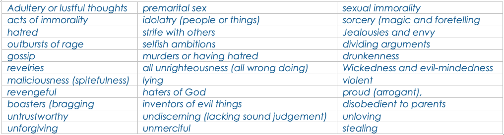…knowing the righteous judgment of God, that those who practice such things are deserving of death,”- Galatians 5:19-21; Romans 1:29-32